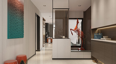 入戶玄關(guān),是日常出入最重要的地方。推門進(jìn)來,首先映入眼簾的墻面,可以說是家的顏值擔(dān)當(dāng)。玄關(guān)的用作從審美的角度看,玄關(guān)的設(shè)計(jì),能對(duì)居室起到一定的美化和裝飾作用,表現(xiàn)了主人的文化修養(yǎng)和藝術(shù)品位。海創(chuàng)輕奢玄關(guān)設(shè)計(jì),香檳色金屬線條利落有致,錯(cuò)層燈帶營(yíng)造既滿足視覺感受,又具有一定的照明需求??臻g質(zhì)感與藝術(shù)感不言而喻。從風(fēng)水角度看,玄關(guān)能夠讓住家藏風(fēng)聚氣,化解“開門見廳”這一布局缺陷,也有很好的擋煞和化煞的作用,并防止旺氣外泄。海創(chuàng)新中玄關(guān)隔而不斷,開門見綠,營(yíng)造了整體大氣卻不失精致感的雅致韻味。柜體隔斷也是一種方式。它既能提升家的顏值,又為家打造了一個(gè)功能區(qū),還可以解決鞋柜的擺放問題,增加收納空間。玄關(guān)的類型入戶玄關(guān)入戶玄關(guān)指的是剛進(jìn)門的那段過渡空間。家里裝修設(shè)計(jì)好不好,玄關(guān)作為“第一眼之美”就起到了畫龍點(diǎn)睛的作用。海創(chuàng)現(xiàn)代入戶玄關(guān)背景墻,愛馬仕橙搭配巖紋,質(zhì)感細(xì)膩、活力滿滿。海創(chuàng)入戶玄關(guān)背景墻采用開門見畫的點(diǎn)綴方式,大方得體。高品質(zhì)板材搭配利落線條,造型別致且錯(cuò)落有序,彰顯出獨(dú)特的魅力過道玄關(guān)過道玄關(guān),在很多人眼中,有很明顯的缺陷,比如路徑長(zhǎng),可能造成空間浪費(fèi),在做玄關(guān)時(shí)要花點(diǎn)心思排布體塊。玄關(guān)作為家中第一道風(fēng)景線,給人的第一印象也代表了主人的審美和品味。一個(gè)好用的玄關(guān)能夠提高人們的家居幸福感,同樣也需要我們用心設(shè)計(jì)哦~more+NEW