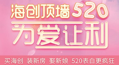 愛不需要說出來只需行動還在糾結(jié)愛不愛的問題?這個520 為愛讓步 給愛讓路海創(chuàng)頂墻為愛讓利愛分享 為愛挑戰(zhàn)掃下方二維碼,參加海創(chuàng)小游戲挑戰(zhàn),幾十份豪禮免費(fèi)送貨上門,最高得分者可獲得便攜式干衣架一套,還有更多好禮等您贏取!愛讓利 省錢省到家質(zhì)高價優(yōu),多款超值爆款限量放送1、4m²抗油污廚房套餐2、創(chuàng)悅高端智能空調(diào)型取暖器+送抗油污扣板8m²,全城限供10臺3、12平方一廚兩衛(wèi)豪華配套吊頂套餐4、12平方生態(tài)環(huán)保臥室整裝5、15平方好事成雙豪華環(huán)保背景墻愛轉(zhuǎn)動 轉(zhuǎn)出好運(yùn)氣活動期間,預(yù)交定金滿5000元即可轉(zhuǎn)動愛心大轉(zhuǎn)盤一次,每多交5000元可多獲一次轉(zhuǎn)動機(jī)會,以此類推,愛心豪禮等你來拿!愛驚喜 幸運(yùn)抽不?;顒悠陂g下定滿5000元即可獲得抽獎券一張,10000元兩張,以此類推,憑抽獎券即可參加5月20日幸運(yùn)大抽獎活動,幸運(yùn)抽不停,驚喜帶回家。更多520讓利,詳見全國各地各大海創(chuàng)專賣店!more+