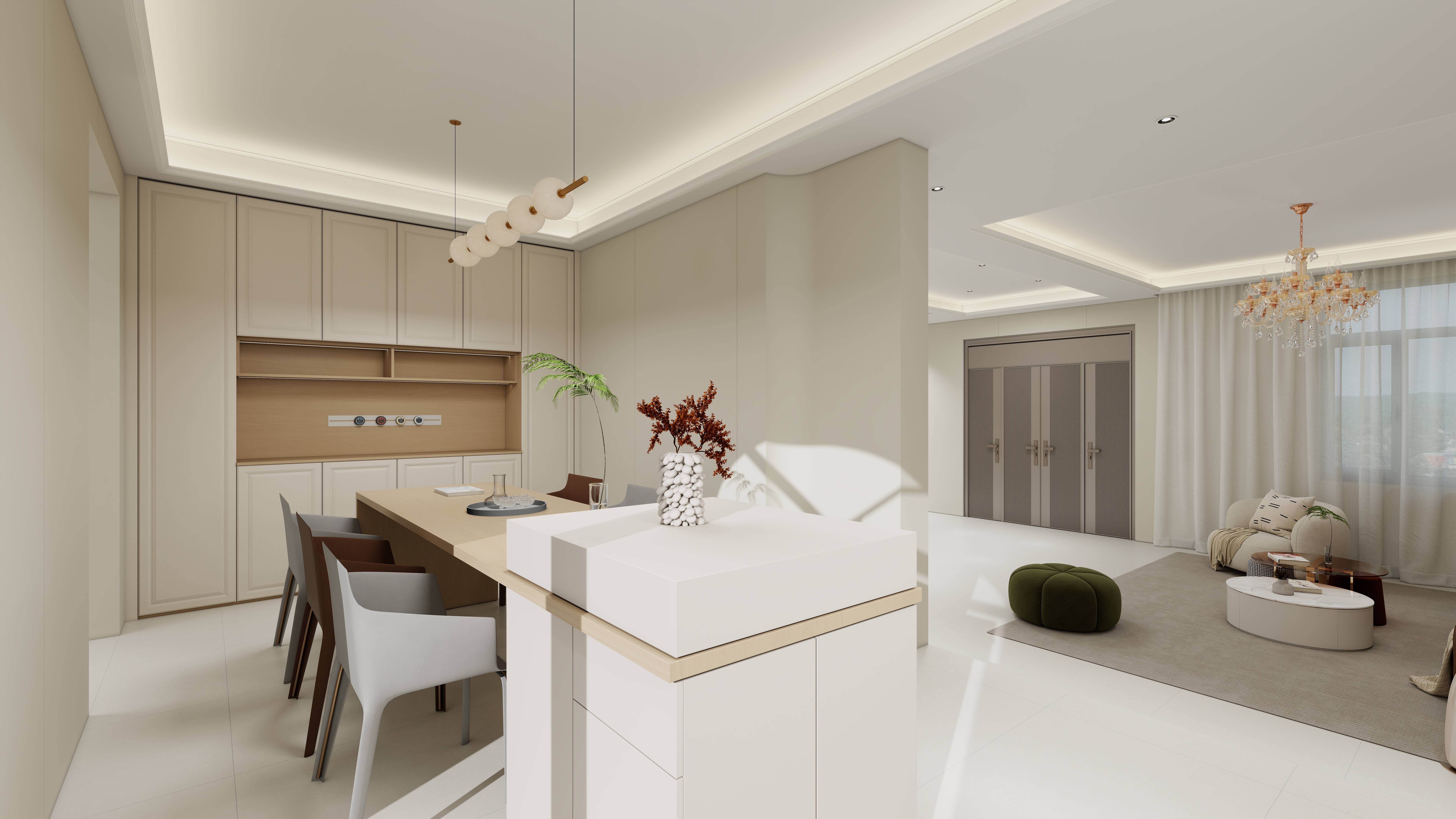 海創(chuàng)頂墻門(mén)柜,以全屋一體化設(shè)計(jì),打破空間界限。從頂面到墻面,從門(mén)到柜,全案落地,省心省力。一室之內(nèi),新中式的雅致與意式極簡(jiǎn)的利落從容切換,盡顯品位與格調(diào)。開(kāi)放式客餐廳:動(dòng)靜之間,風(fēng)格交融客廳新中式:長(zhǎng)條電視背景墻,上下鏤空半懸浮造型,山水3D打印畫(huà)襯底,黑白碰撞間,電視完美嵌入定制柜,大氣雅致。沙發(fā)背景:打印畫(huà)與格柵小面積穿插,精致點(diǎn)綴,提升空間層次感。餐廳意式極簡(jiǎn):島臺(tái)式設(shè)計(jì)搭配通頂餐邊柜,墻柜一體,用餐體驗(yàn)更顯流暢高級(jí)。開(kāi)放式廚房:轉(zhuǎn)角布局,磁吸軌道+無(wú)主燈設(shè)計(jì),簡(jiǎn)約利落,動(dòng)線(xiàn)自如。私享空間:各具特色,舒適至上主臥:3D打印畫(huà)穿插做上下分割,奶白色調(diào)搭配光影燈帶,柔和敞亮,溫馨入眠。次臥:簡(jiǎn)約新中床頭背景,一門(mén)到頂定制柜延伸為床頭柜,小空間也能舒適從容??头浚焊駯牌唇颖尘?,簡(jiǎn)約不失創(chuàng)意,待客之道自有格調(diào)。休閑活動(dòng)室:靜音舒適,年味更濃過(guò)年邀友相聚,麻將聲聲,靜音設(shè)計(jì)加持,舒適又自在,歡聚時(shí)光更盡興。more +03月