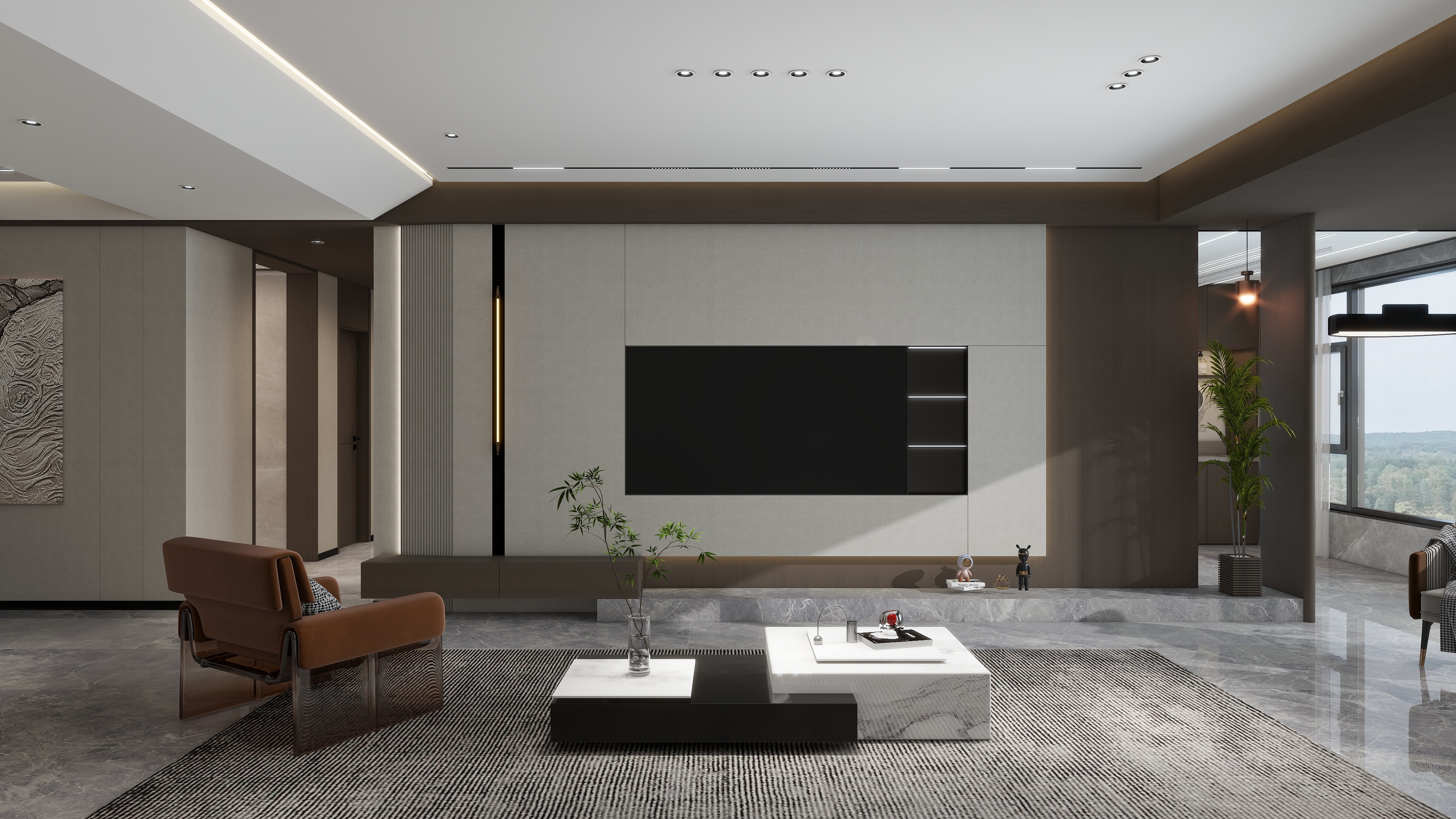 150㎡整裝以宋式風(fēng)雅為魂,融合現(xiàn)代人居理念,打造至簡至美的高端生活場域。從頂、墻到門、柜一體貫通,材質(zhì)、光影與形態(tài)和諧共生,讓每一次歸家,皆是沉浸式的人文體驗。客廳|懸浮曲面,光影寫意電視背景墻采用9A木健康墻板打造懸浮曲面,柔韌流暢;沙發(fā)背景嵌入3D打印宋式窗格畫,虛實交織,勾勒出簡約而深邃的東方意境。餐廚|圓融有序,隱逸之美餐廳以中式圓桌呼應(yīng)半開放餐邊柜,電器嵌入、一門到頂,秩序中見豐盈。廚房延續(xù)深白配色,靜謐純粹,煙火亦成詩。臥室套間|功能與形制交融主臥以U型轉(zhuǎn)角柜構(gòu)建衣帽、梳妝與衛(wèi)浴一體的大套房,造型別致,儀式感十足。次臥拆除飄窗改為榻榻米,輔以蒲團茶席,休閑與休憩自如切換。書房與兒童房|東方意境與巧思并存書房借水墨江山畫與深胡桃木書柜營造靜心讀寫之境。兒童房巧妙延伸定制柜作床頭柜,釋放活動空間,兼顧成長與雅趣。全屋以宋為韻,以整裝為筆,不僅統(tǒng)一了視覺美學(xué),更在細節(jié)中植入從容的生活節(jié)奏——這是一處可居、可賞、可安放身心的現(xiàn)代宋式雅居。more +01月