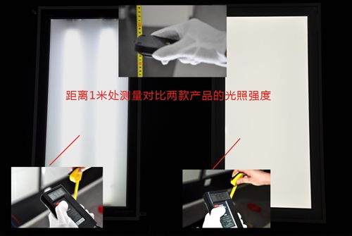 琥珀系列節(jié)能燈管產(chǎn)品(左)與琥珀系列LED純屏燈(右)產(chǎn)品厚度對比測試