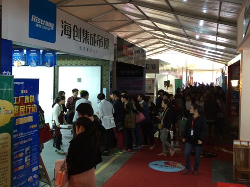 本次家博會(huì)匯集美爾凱特、法獅龍、奧華、美大、三星、蘇泊爾、科勒、火星人、TOTO等眾多知名一線品牌,現(xiàn)場(chǎng)氣氛熱烈,人流涌動(dòng),海創(chuàng)更是全場(chǎng)人氣焦點(diǎn),凡關(guān)注海創(chuàng)集成吊頂官方微信,集滿33個(gè)贊的微友可以到現(xiàn)場(chǎng)領(lǐng)取奧克斯電水壺或浴巾三件套一份,未到開(kāi)始時(shí)間,海創(chuàng)展位前面就排起了長(zhǎng)龍,隊(duì)伍一直排到會(huì)場(chǎng)門(mén)口。