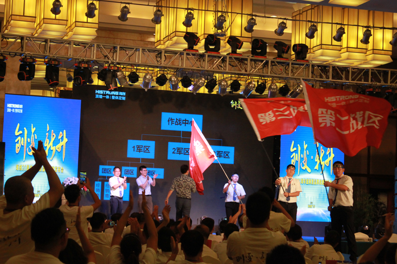 正值海創(chuàng)公司20周年慶典各經(jīng)銷商共聚一堂之時(shí),特舉行本年度全國聯(lián)動(dòng)啟動(dòng)儀式。首先,海創(chuàng)根據(jù)各專賣店銷售業(yè)績實(shí)行實(shí)力均等分組,共分成三個(gè)軍區(qū),三大軍區(qū)分別上臺(tái)授旗,個(gè)個(gè)精神抖擻、氣勢(shì)非凡。