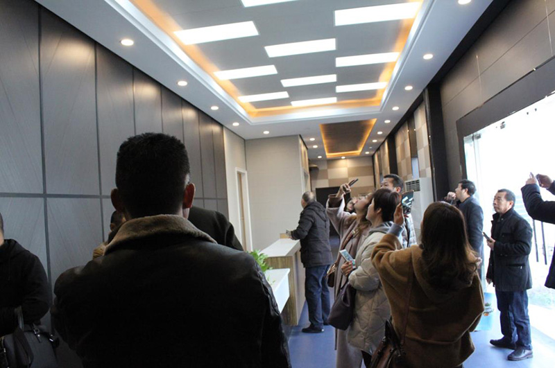 2017年12月27日,迎著冬日的暖陽,一行考察客戶首先到達(dá)華麗的海創(chuàng)頂墻整體定制展廳。比以往更為震撼的是,此次考察時(shí),正逢海創(chuàng)史詩般的頂墻整體定制工裝展廳竣工。當(dāng)天蒞臨的客戶就這樣成了第一批目睹其華麗姿容的人。巧奪天工的精致與奢華,令在場所有人沉醉其中、流連忘返。
