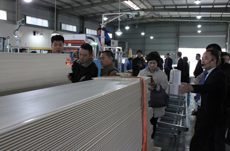 看到產(chǎn)品的魅力所在后,了解其誕生的過程也是至關(guān)重要的。隨后,考察團(tuán)隊(duì)來到海創(chuàng)車間參觀集成吊頂與集成墻面的生產(chǎn)過程。巨大的生產(chǎn)車間與流水線操作讓來訪者進(jìn)一步加深對產(chǎn)品的認(rèn)識(shí)。