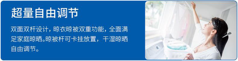 新增10根特色晾曬橫桿,方便小件衣服懸掛晾曬,輕松晾曬嬰兒衣物與毛巾,也可平放曬衣,增大晾曬面積,老人小孩可輕松實現(xiàn)操作。