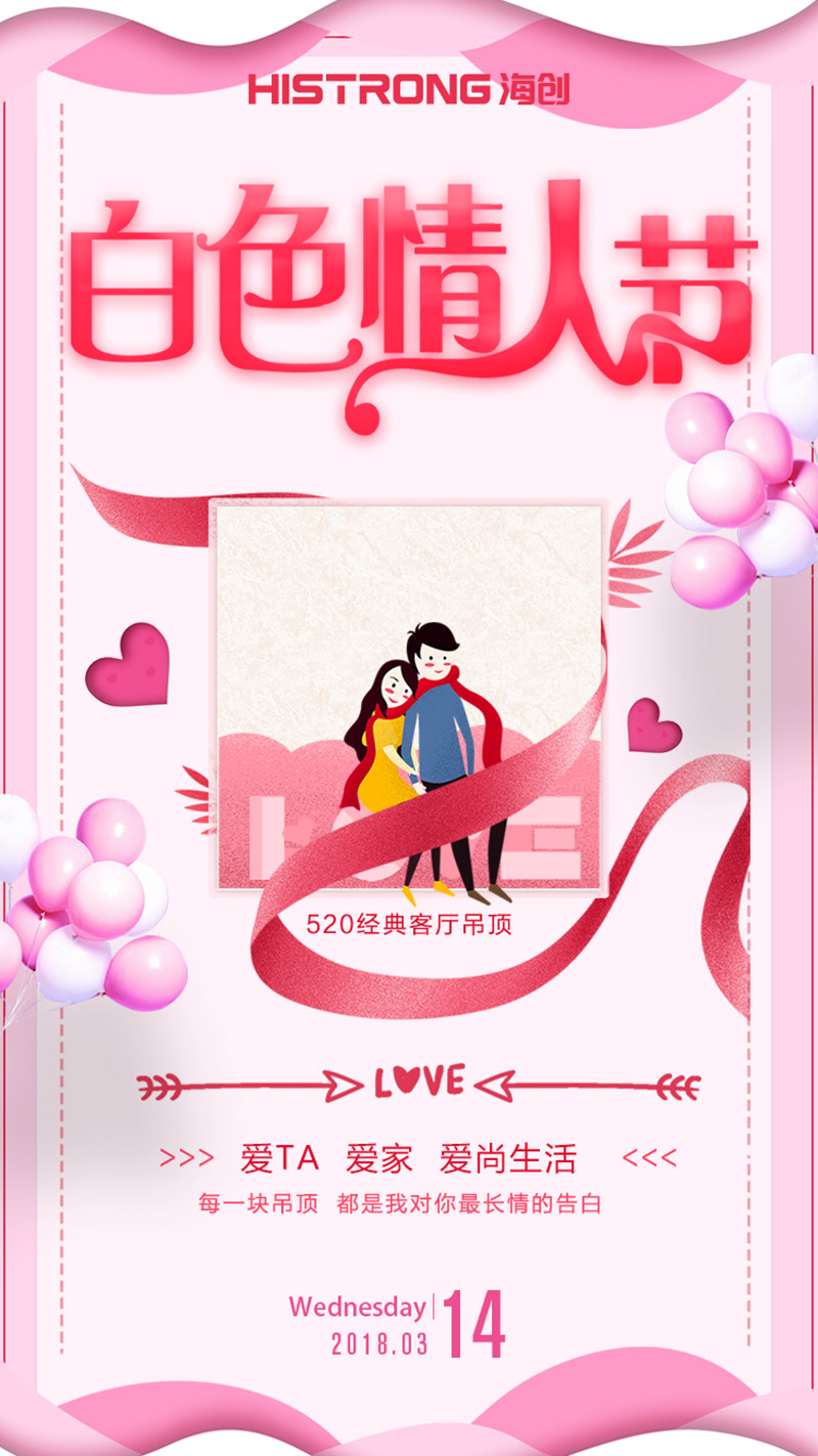 這個白色情人節(jié),送TA一片520系列海創(chuàng)集成吊頂,給愛巢筑起一片天空!