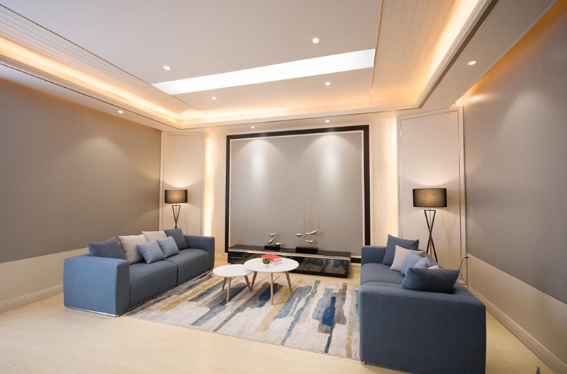 和家裝展廳相比,總體設(shè)計格調(diào)更偏現(xiàn)代簡潔,是緊跟潮流趨勢的一次升級。以工裝為主題,帶有部分家裝和別墅展示,為各種各樣的場所應(yīng)用做了探