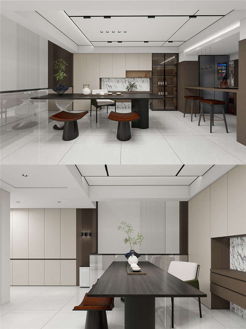 茶室與客廳分置兩端,中間以時尚茶吧自然銜接。