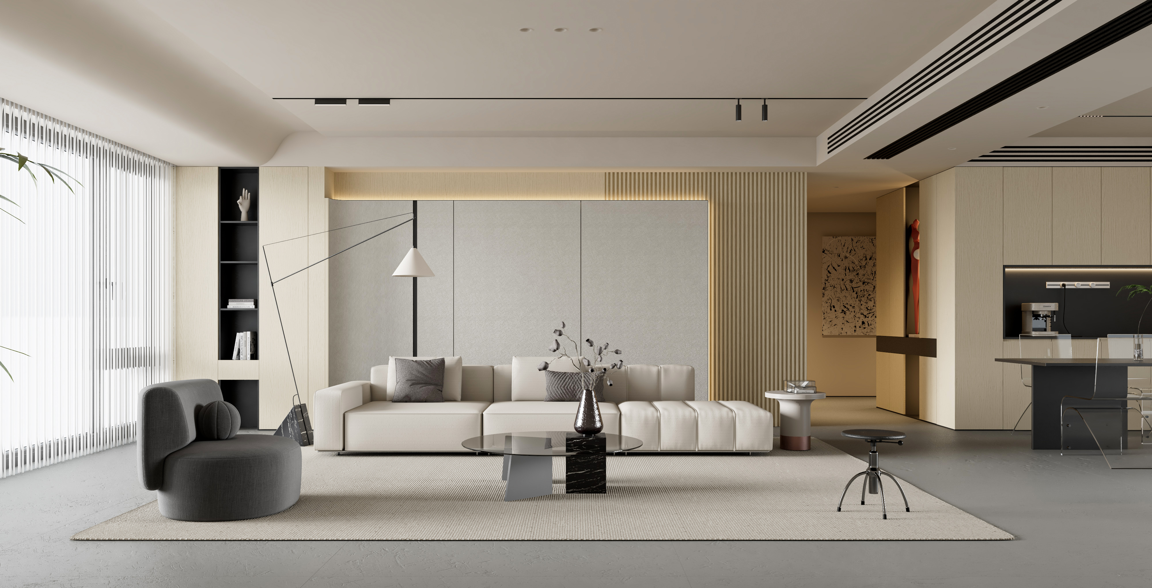 意式輕奢,極簡之境。120平別墅空間,海創(chuàng)頂墻門柜全屋定制,一體化開放設(shè)計,白棕色調(diào)溫柔鋪陳,一站式裝修從容落地。玄關(guān)·客廳:秩序與自在進門簡易玄關(guān)柜,立于電視背景一側(cè),不占面積,只增從容。電視與沙發(fā)背景相向而立,白棕對望,空間有了對話。9A木拼接背景墻,簡潔中暗藏變化,紋理訴說質(zhì)感。餐廚空間:方圓有度餐廚分布于內(nèi),圓桌與側(cè)邊方柜,一方一圓自成秩序。頂部方形燈帶勾勒,光線里藏著幾何美學。圍合式廚房布局,充實而精致。上吊柜、下地柜,冰箱完美內(nèi)嵌。側(cè)邊轉(zhuǎn)角開放格設(shè)計,空間整齊劃一,收納處處到位。主臥·次臥:靜謐與質(zhì)感主臥高級白灰設(shè)計,墻柜同色,視覺延伸,質(zhì)感渾然天成。一門到頂定制衣柜,銜接梳妝柜,角落中開辟女主人的精致天地。次臥靜謐雅致,墻柜組合極簡演繹,少即是多,靜即是美。一站式優(yōu)勢總結(jié)頂、墻、門、柜全屋同配,風格統(tǒng)一不拼湊。從設(shè)計到落地,一站式裝修省心省力。海創(chuàng)9A木,環(huán)保耐用,讓極簡別墅既有顏值,更有品質(zhì)。海創(chuàng)頂墻門柜——你的家,本該如此從容高級。more +04月