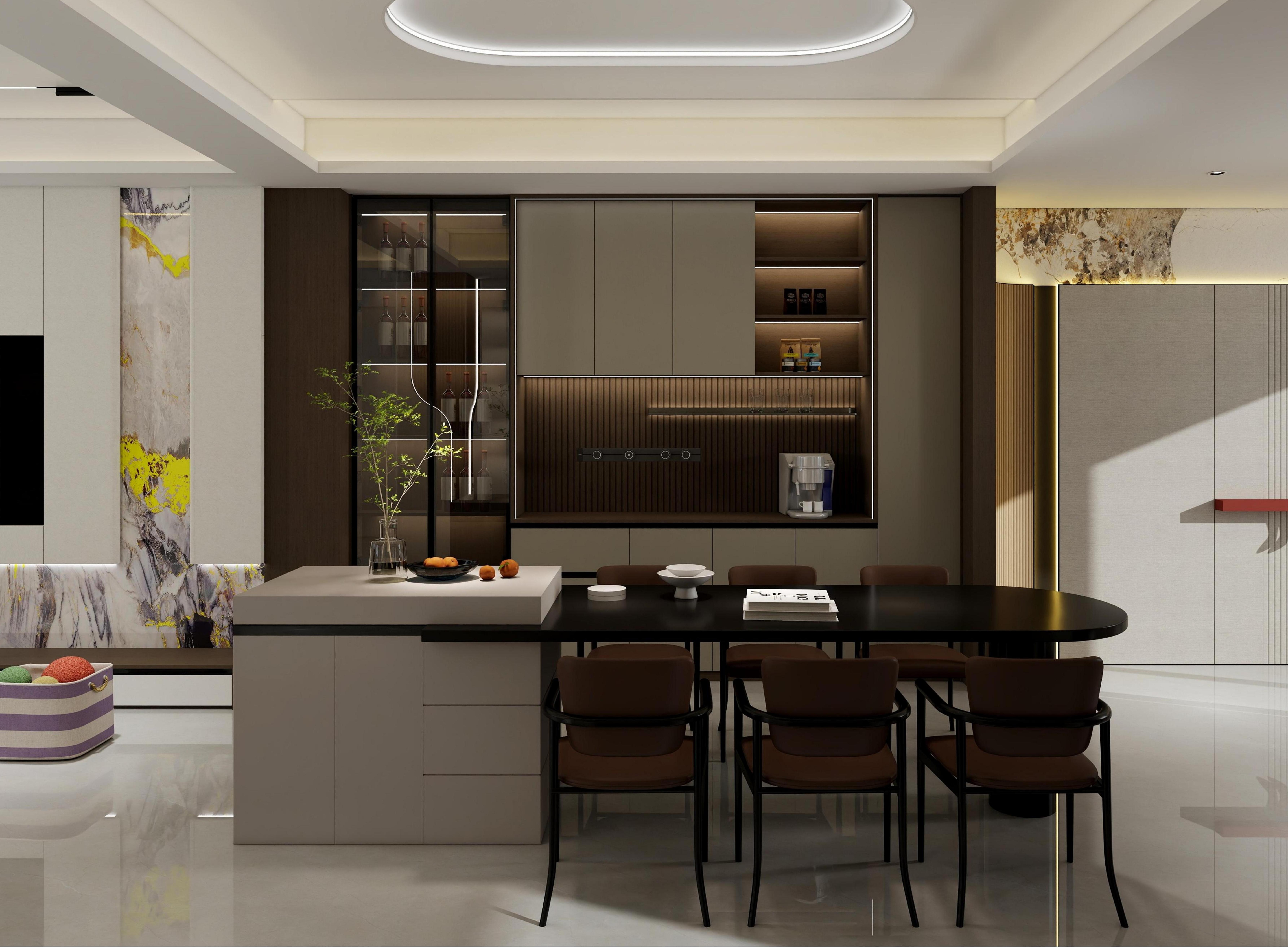 步入這個245㎡的意式大平層,半透黑胡桃與白、灰色調(diào)共同勾勒出寧靜雅致的氛圍??臻g核心,是整體優(yōu)雅的頂墻門柜一體化配色氛圍,在這個開放式大空間內(nèi)渾然一體,凸顯大宅精致氣度。設(shè)計(jì)亮點(diǎn)01 流動的客廳圓弧轉(zhuǎn)角電視背景墻與滿墻電視柜的無縫銜接,消除直角帶來的生硬感,讓視線與動線自然流轉(zhuǎn)。書房融入客廳,開放式布局打破空間壁壘限制。02 社交型餐廚開放式餐廚設(shè)計(jì),島臺成為家庭互動中心。大理石與木紋的碰撞,精致與溫暖并存。03 差異化臥室每個臥室都有獨(dú)特的墻柜設(shè)計(jì)與床頭拼色背景,在統(tǒng)一風(fēng)格中保留個性表達(dá)。04 隱形收納系統(tǒng)從書房半透柜到陽臺整體柜,收納被藝術(shù)化地隱藏,保持空間表皮的絕對純凈。05 極致色彩統(tǒng)一半透黑胡桃搭配白色、灰色調(diào),通過頂墻門柜同色配套,達(dá)到視覺效果的完美和諧。在這個快節(jié)奏的時代,家應(yīng)當(dāng)是讓人慢下來的地方。這個245㎡的極簡意式大平層,用克制的設(shè)計(jì)語言,構(gòu)建出一個既能容納生活瑣碎,又能撫慰心靈的理想居所。more+