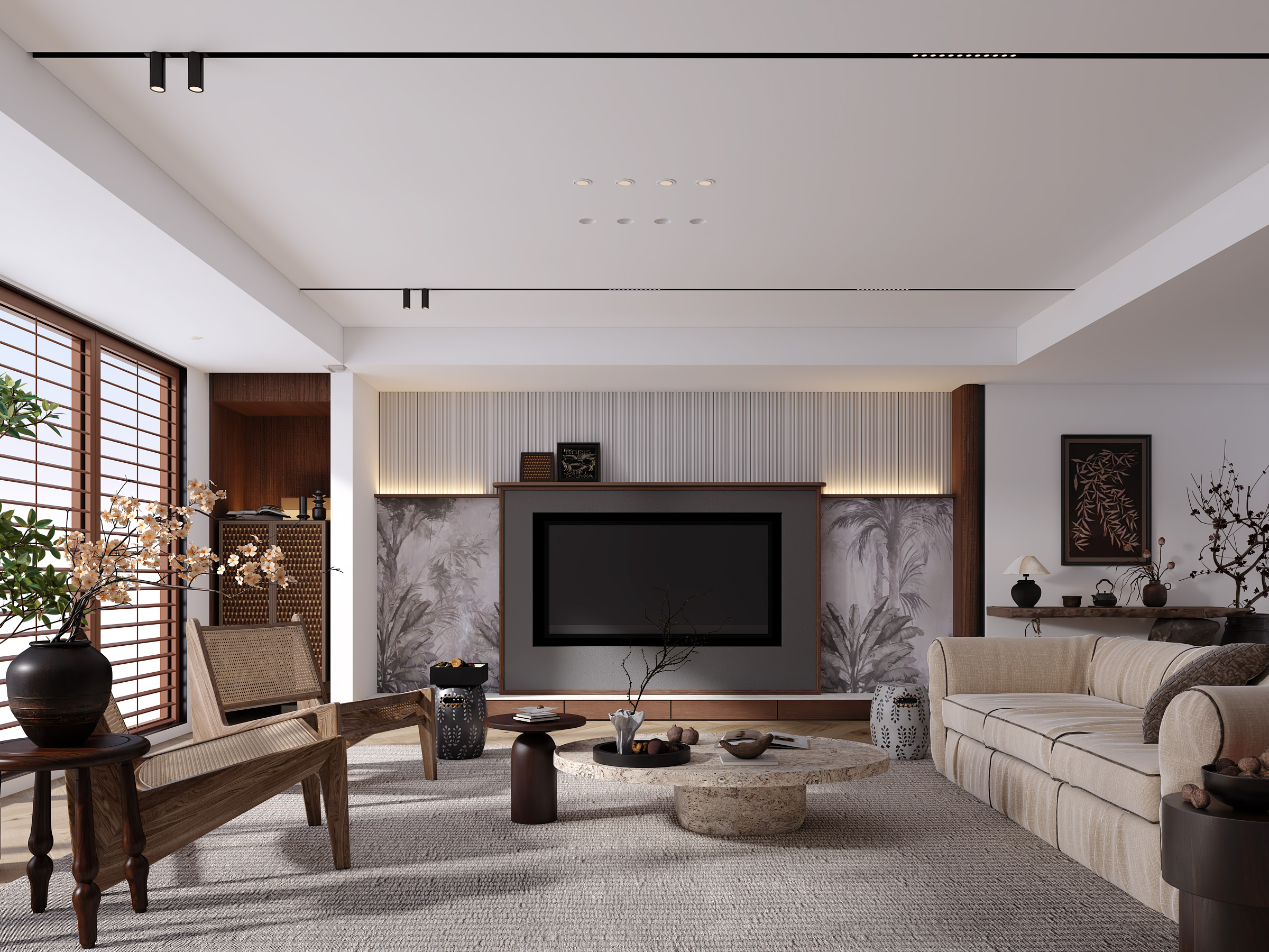 深淺胡桃木與新中留白藝術(shù) 演繹都市平層生活范本…