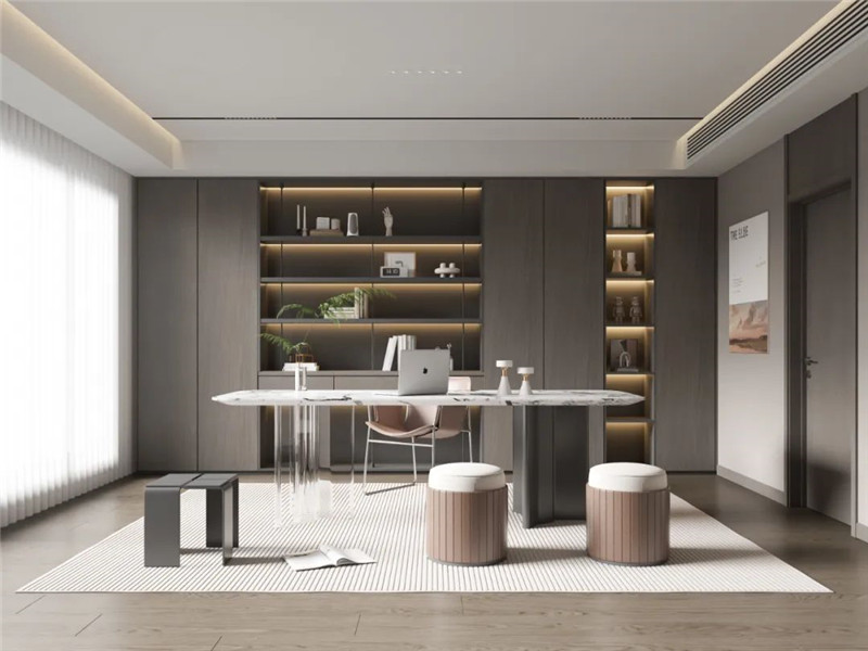 全屋定制,一站式交付從頂?shù)綁?,從門到柜,一體化設計、一站式落地。省去對接煩惱,還原純粹意式美學。白棕為底,極簡為魂全屋以白、棕兩色鋪陳,干凈克制,溫潤有度。無主燈設計+博格鋁蜂窩大板吊頂,磁吸軌道燈勾勒線性光,頂部輕盈,空間釋放。餐廚讓渡,客廳做大簡易餐廚區(qū)壓縮功能,將更多面積還給客廳。電視背景與沙發(fā)背景模塊拼接,木紋與石紋交錯碰撞,質(zhì)感層層遞進,留白處皆是呼吸感。主臥半隔斷,動靜分明9A木健康墻板圍合睡眠區(qū),隔音降噪,安睡無擾。半隔斷劃分寫字區(qū)與休臥區(qū),工作與休息互不打擾,小空間也有大秩序。次臥墻柜一體,一黑一棕兩間次臥分別采用黑色與棕色墻柜一體設計,收納隱形,立面干凈。黑白間半懸浮床頭柜,輕盈不落地,細節(jié)處見巧思,時尚感別具一格。頂墻門柜,一步到位無需東奔西跑,一套方案貫穿全屋。海創(chuàng)定制,讓110㎡住出意式極簡的從容與高級。more +03月