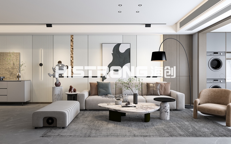 全屋定制,住得省心海創(chuàng)頂墻門柜一體化打造,220平大平層,清爽白為底,深棕與灰色小面積點綴。從毛坯到入住,設(shè)計、選材、施工一站統(tǒng)籌,不用東奔西跑,落地效果就是當(dāng)初想要的樣子。玄關(guān) · 進門就順了一門到頂?shù)男P(guān)柜,推開門視線干凈開闊。鑰匙、外套、鞋子各有歸處,每天出門回家,心里也跟著清爽起來??蛷d · 待著就不想走沙發(fā)背景與電視墻非對稱設(shè)計,一面是山水3D打印畫,一面是素面留白。無主燈,光影柔軟散落,坐哪都自在。朋友來家里,總說這地方待著舒服。餐廚 · 做飯也不孤單島式餐桌居中,備餐、吃飯、聊天自然連在一起。半開放式餐邊柜,常用的小電器順手拿取,臺面始終整潔。一家人在一塊兒的時間,比原來多了不少。主臥 · 一躺就放松無拉手定制柜與墻面融成一片,視線沒有多余線條。9A木墻板拼接的背景墻,溫潤的觸感,晚上燈一關(guān),身心很快沉下來。收納夠用,空間干凈,睡眠自然安穩(wěn)。兒童房 · 成長有陪伴書桌緊鄰休息區(qū),寫作業(yè)、畫畫、發(fā)呆各得其所。柜子高度按孩子來設(shè)計,自己也能整理玩具。看著他在自己的小天地里安靜長大,挺踏實的。書房 · 獨處有質(zhì)量一門到頂書柜,半開放加燈帶,找書順手,燈光柔和。書桌臨窗,窗外安靜,屋內(nèi)也安靜。無論是加班還是讀書,都能很快沉進去。海創(chuàng)頂墻門柜,拎包入住墻、頂、門、柜全案統(tǒng)籌,風(fēng)格統(tǒng)一,交付即成品。極簡大平層,不只是好看,更是每天住著都順心。more +品牌介紹