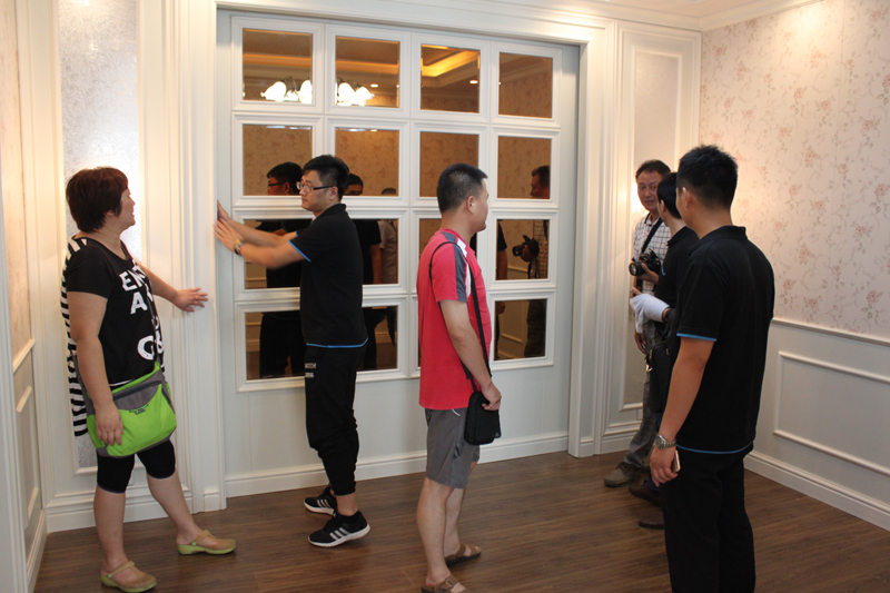 此次參與海創(chuàng)工廠團購會的是來自江蘇太倉的客戶朋友,從開始到結束,我們?yōu)榭蛻魷蕚淞艘徽棕S富有趣的團購行程,以此增強本次活動的趣味性??蛻舻竭_海創(chuàng)公司后接受了區(qū)域經(jīng)理的熱情接待,并參觀了公司樣板間,中午小憩后,在工作人員帶領下全體客戶前往海創(chuàng)頂墻一體體驗館重點參觀選購。