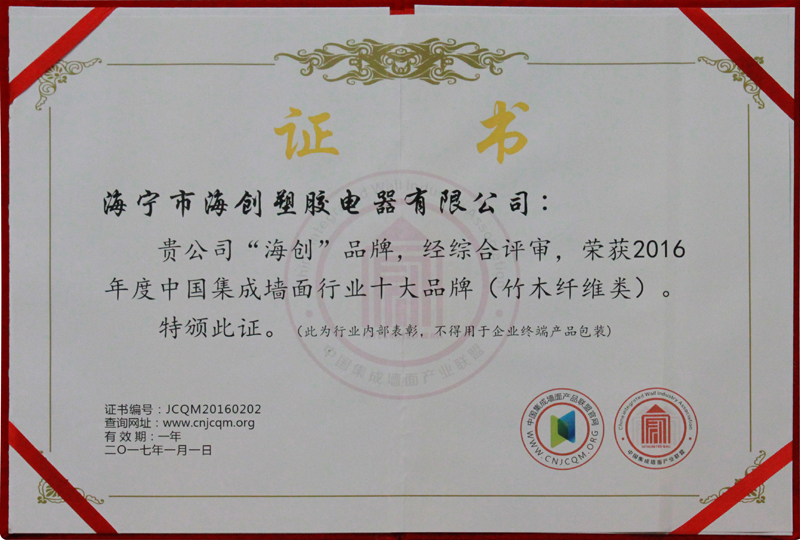 海創(chuàng)總經(jīng)理陳華出席本次年會并為海創(chuàng)捧回年度大獎(jiǎng)。海創(chuàng)榮獲2016中國集成墻面行業(yè)十大品牌。