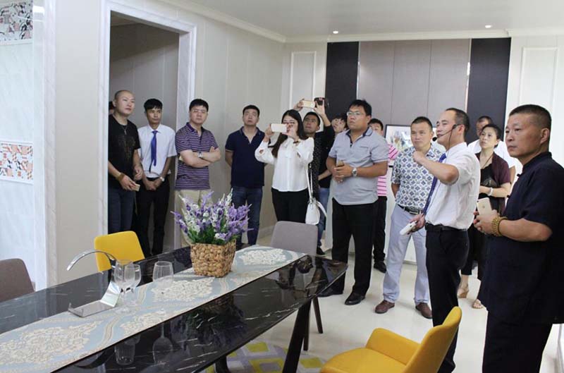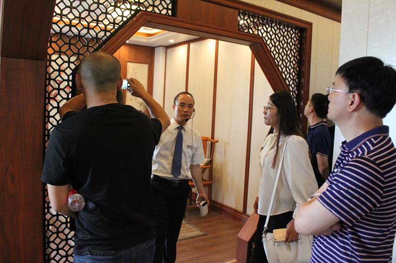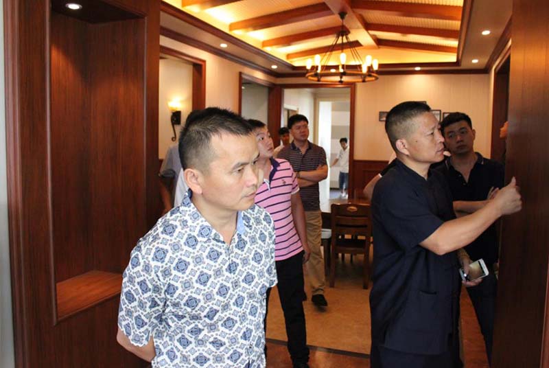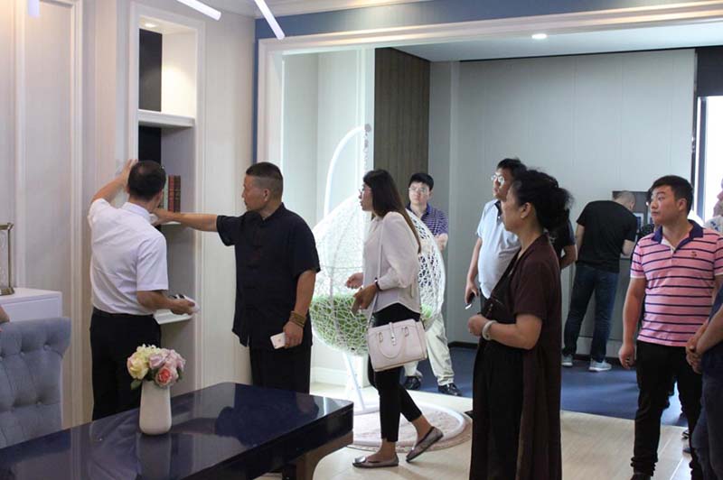 此次峰會受到全國眾多創(chuàng)業(yè)意向者關(guān)注,各位有志之士齊聚海寧,共同探討行業(yè)成長之道。9月15日上午,與會伙伴在海創(chuàng)工作人員的接待下前往尖山頂墻整體定制體驗館參觀。海創(chuàng)始終提倡的八大空間與五大風(fēng)格在此地華麗綻放,竹木裝飾板集成墻面與集成吊頂的無限組合方式給讓人眼前一亮,現(xiàn)場客戶贊不絕口。