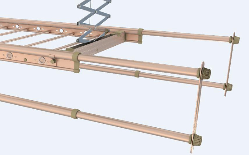 雙面雙桿設(shè)計,晾衣晾被雙重功能,全面滿足家庭晾曬。晾被桿可卡掛放置,干濕晾曬自由調(diào)節(jié)。