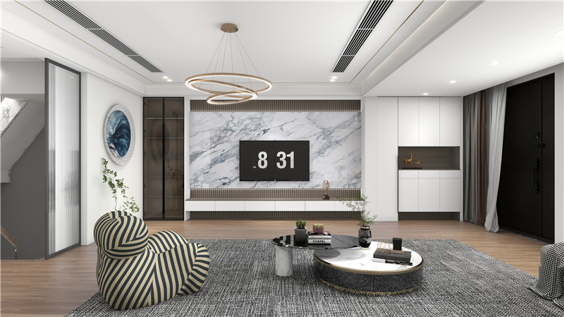 當(dāng)背景墻旁邊是門的時(shí)候,門墻柜一體的設(shè)計(jì)往往能達(dá)到更統(tǒng)一的視覺效果。定制柜、背景墻和靜音門可以做到同色同材設(shè)計(jì),組合起來毫無違和感。