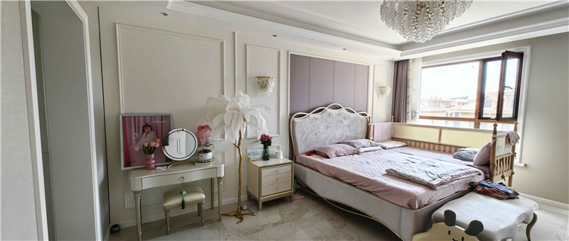 臥室空間以紫色點(diǎn)睛,不至于讓一眾純白讓居室顯得單調(diào),溫馨中又多了一絲高貴與精致。