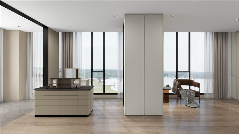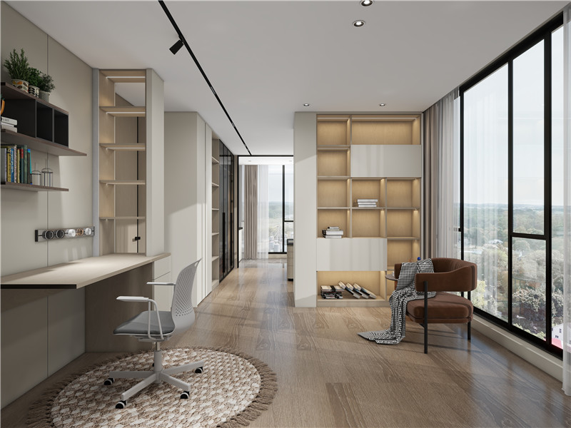 臥室則是主人靈魂的展現(xiàn)。主臥沿襲客廳奶白色調(diào),搭配定制柜做簡(jiǎn)約呈現(xiàn)。一個(gè)隱形門(mén)貫穿里外,開(kāi)啟走入式衣帽間和書(shū)房天地,U型轉(zhuǎn)角柜的設(shè)計(jì)節(jié)省空間,三面收納,將空間利用率發(fā)揮到極致。