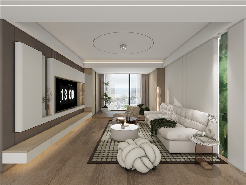 奶油風(fēng)通常以低飽和度的奶油色、米色、奶咖色等為主色調(diào),營(yíng)造出一種溫暖而治愈的氛圍。家具多選用帶有圓潤(rùn)線(xiàn)條的款式,如弧形沙發(fā)、圓形餐桌等,展現(xiàn)出一種柔和的美感。在材質(zhì)上,常使用木材、藤編、羊羔毛等,增加自然與質(zhì)樸的感覺(jué)。墻面可能會(huì)采用帶有肌理感的材質(zhì),如海格墻板,表面紋理質(zhì)感多樣,讓空間更有層次感。