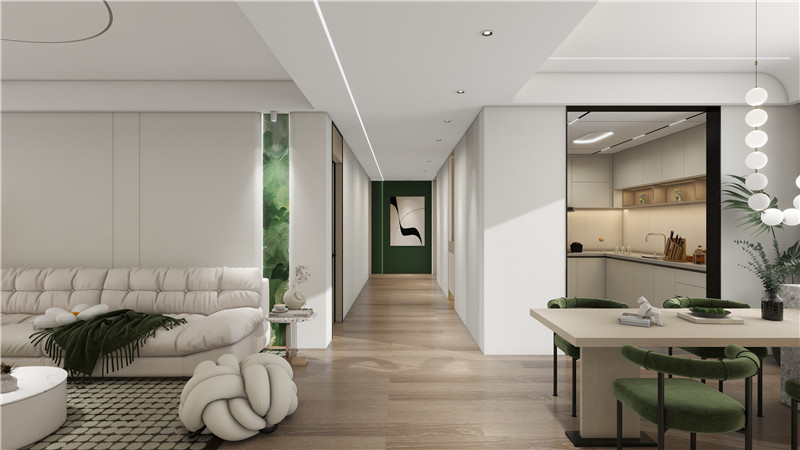 客餐廚一體的打通設(shè)計(jì),配合生態(tài)定制柜的通排布局,激發(fā)了空間利用潛力。滿(mǎn)墻電視柜+弧形轉(zhuǎn)角造型,張弛有度,既契合了奶油風(fēng)風(fēng)格,又滿(mǎn)足收納等日常需求,也讓整個(gè)空間多了一份整潔。