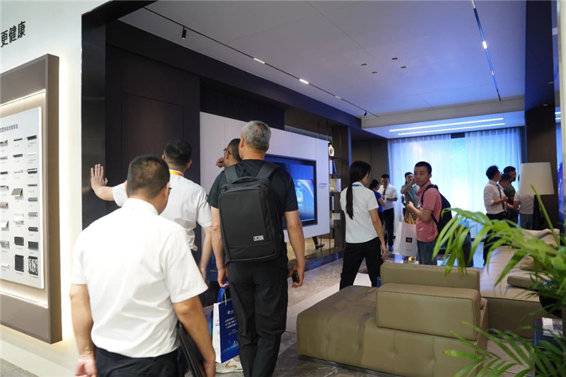 從外到內(nèi),海創(chuàng)展廳都把設(shè)計感發(fā)揮的淋漓盡致。路過的人群,總會把目光交給海創(chuàng);展廳內(nèi)部,也匯聚了不少游客,特別是這面背景墻和樣品的展示區(qū)。