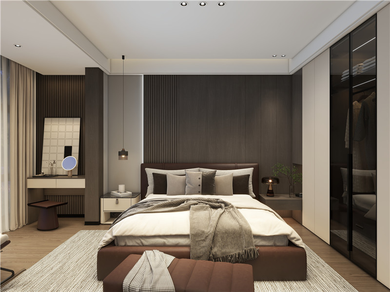 主臥是舒適與浪漫的港灣。床頭背景墻的設(shè)計(jì)簡約而不失溫馨,與頂墻門柜的同色搭配,營造出寧靜的睡眠氛圍。