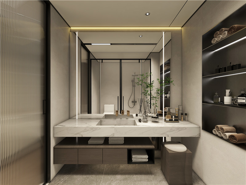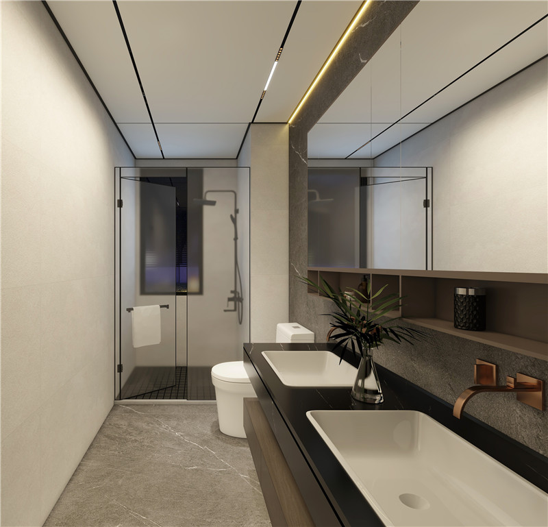 空間越是有限,線性取暖越能煥發(fā)它的魅力。干濕分離的設(shè)計(jì)、防潮耐用的博格大板做吊頂,再結(jié)合定制柜的巧妙融入,即使是潮濕環(huán)境也不必?fù)?dān)心,為主人省去諸多維護(hù)煩惱。