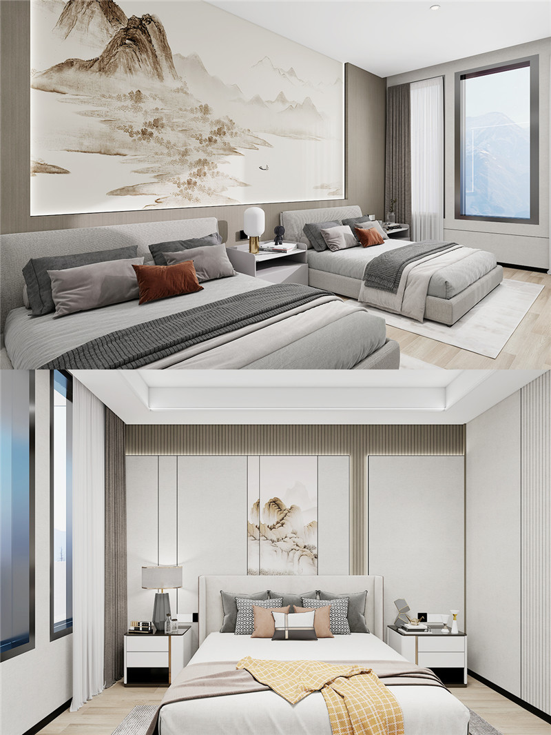 上層歸心:臥房/客房靜謐,9A木健康墻板零醛守護(hù),生態(tài)柜體嚴(yán)絲合縫,安枕無(wú)憂。