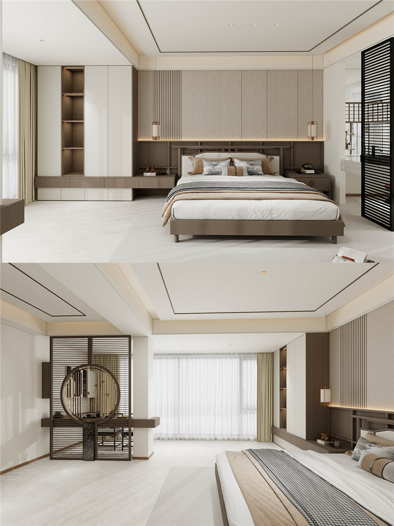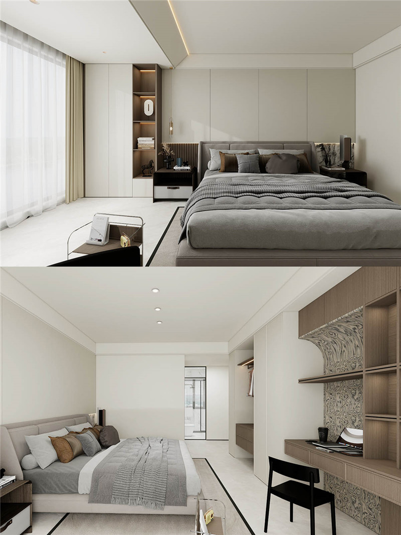 開放的宴會廳與書房滿足待客與文化交流。整墻書柜與隱藏式折疊門設(shè)計,展現(xiàn)了海創(chuàng)一體化設(shè)計的巧妙,空間可隨家庭需求自由變幻。
