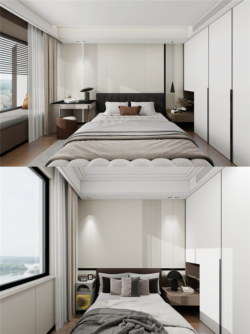 臥室|飄窗主臥+墻柜次臥,靜謐治愈